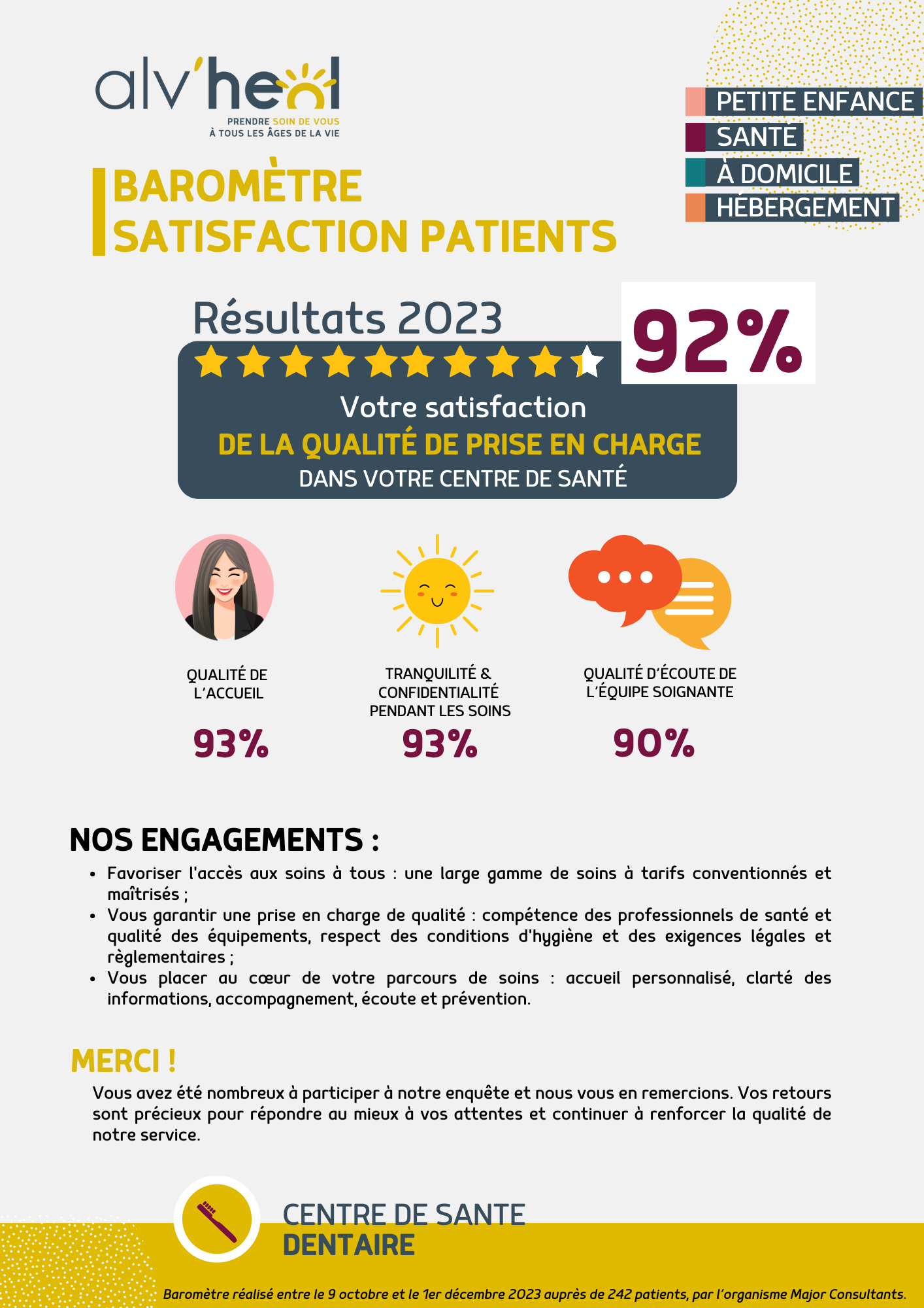 *Étude menée auprès de 242 patients dans nos centres de santé dentaires d’octobre à décembre 2023 par Major Consultants.